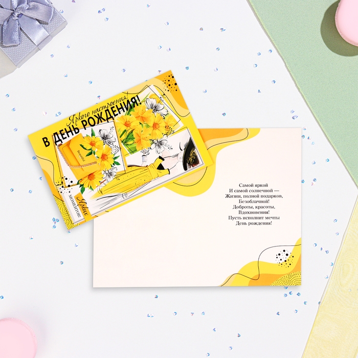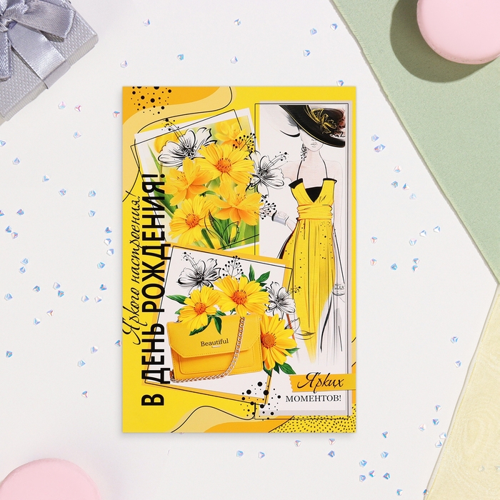 Открытка "Яркого настроения в День Рождения!" желтые цветы, 19х29 см