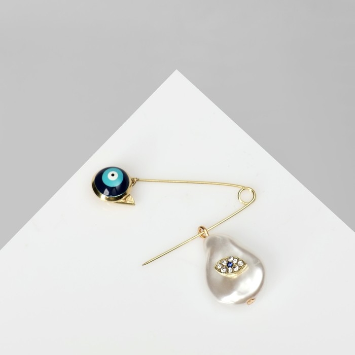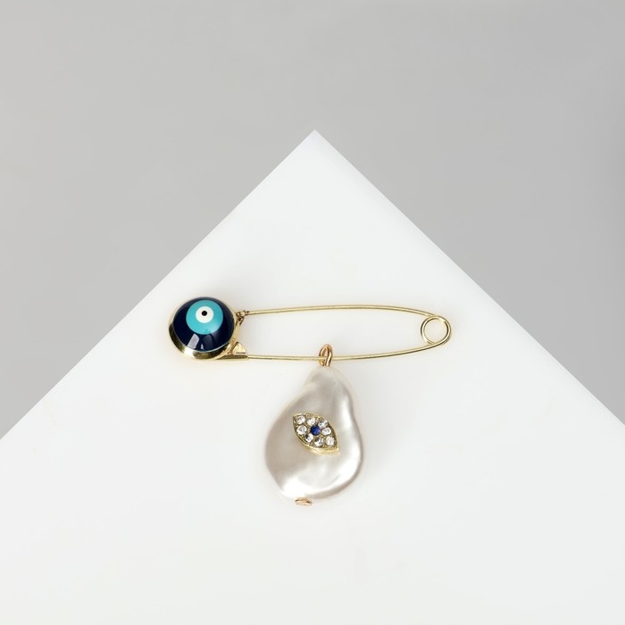 Булавка-оберег «Глазки» с подвесками, 5 см, цветная в золоте