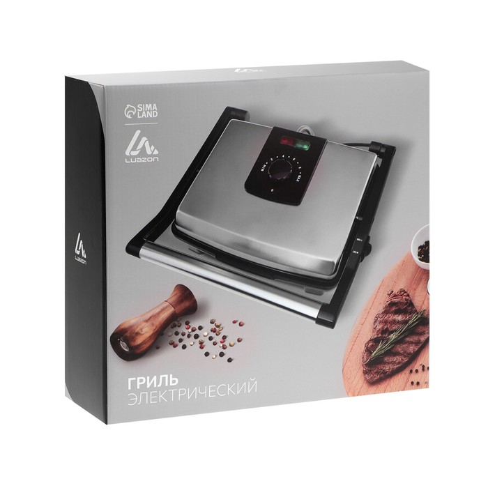 Электрогриль Luazon LEG-2001, 2000 Вт, антипригарное покрытие, 30х23.5 см