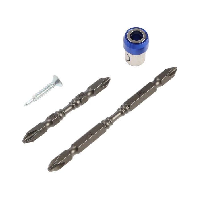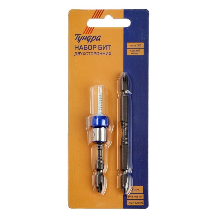 Набор бит ТУНДРА, сталь S2, круглый магнит, двухсторонняя, PH2 х 65 и 100 мм, 2 шт.