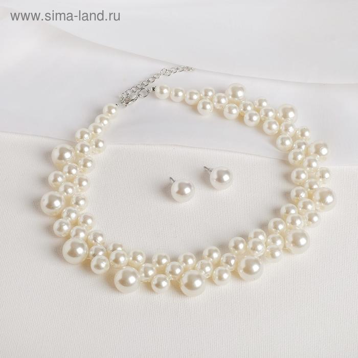 Набор 2 предмета: серьги, колье «Жизель» россыпь бусин, цвет белый, 42 см