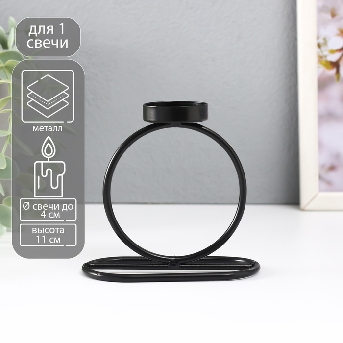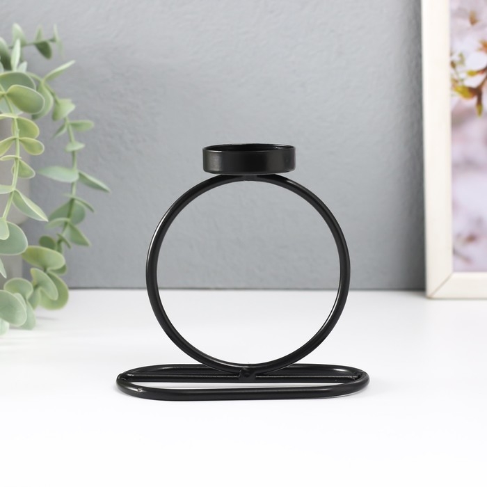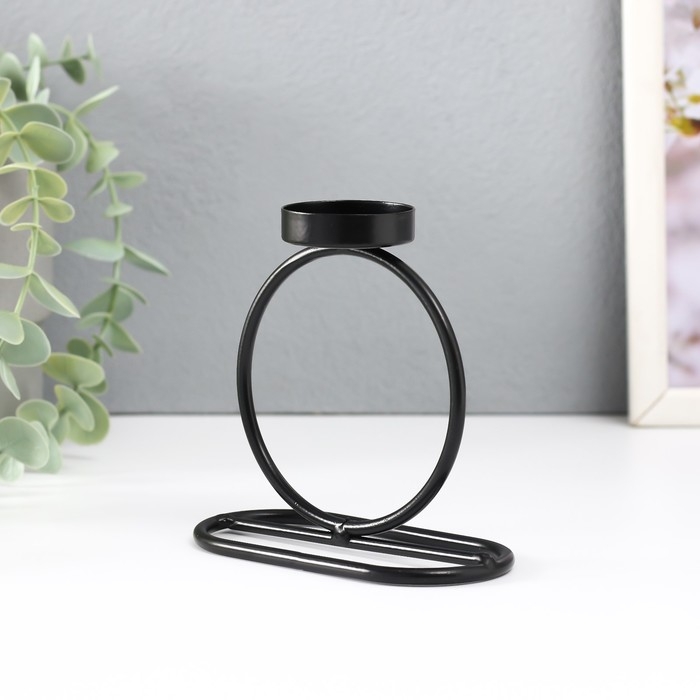 Подсвечник металл на 1 свечу "Кольцо" d=4 см чёрный 11х6х11 см