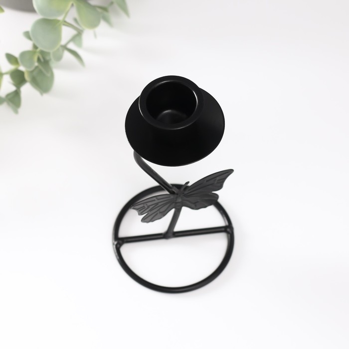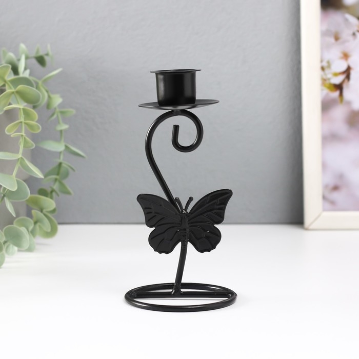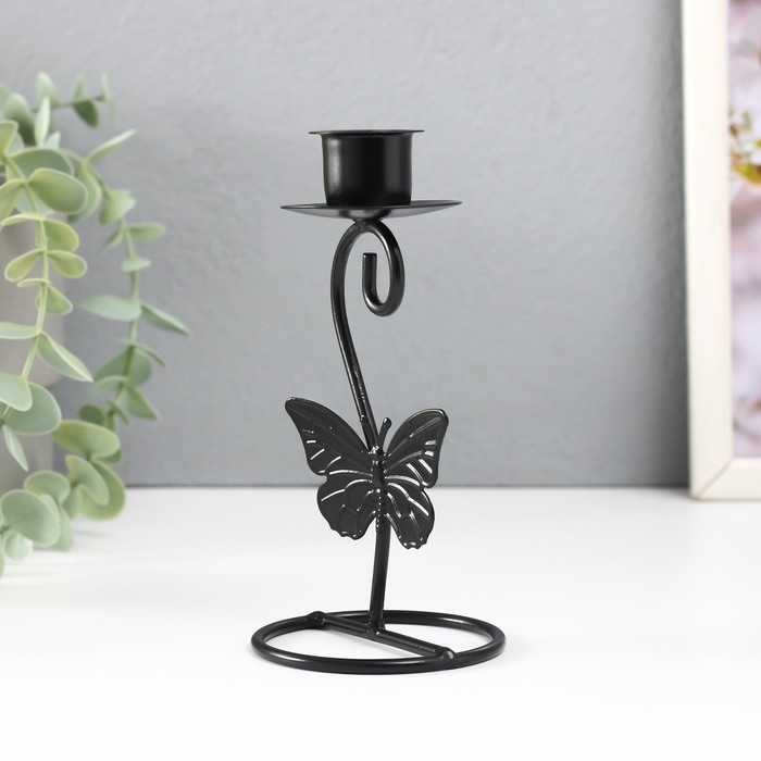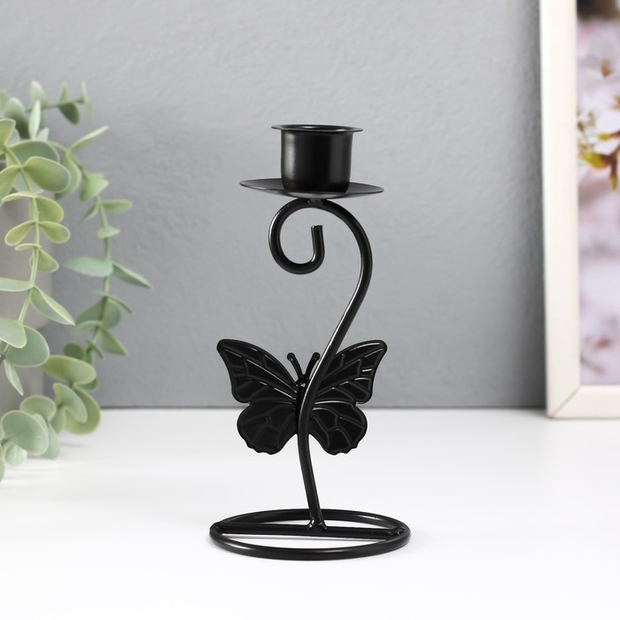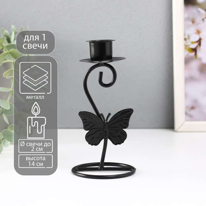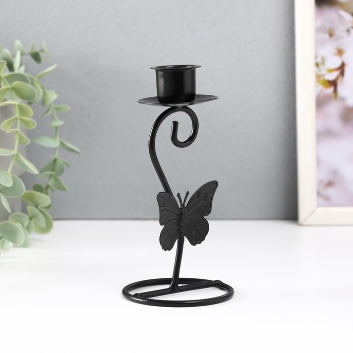 Подсвечник металл на 1 свечу "Бабочка с завитком" d=2 см чёрный 7х7х14 см