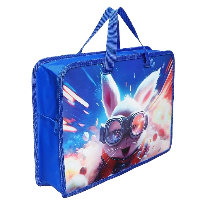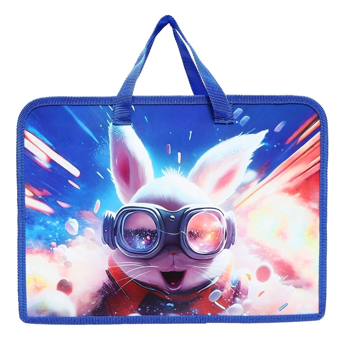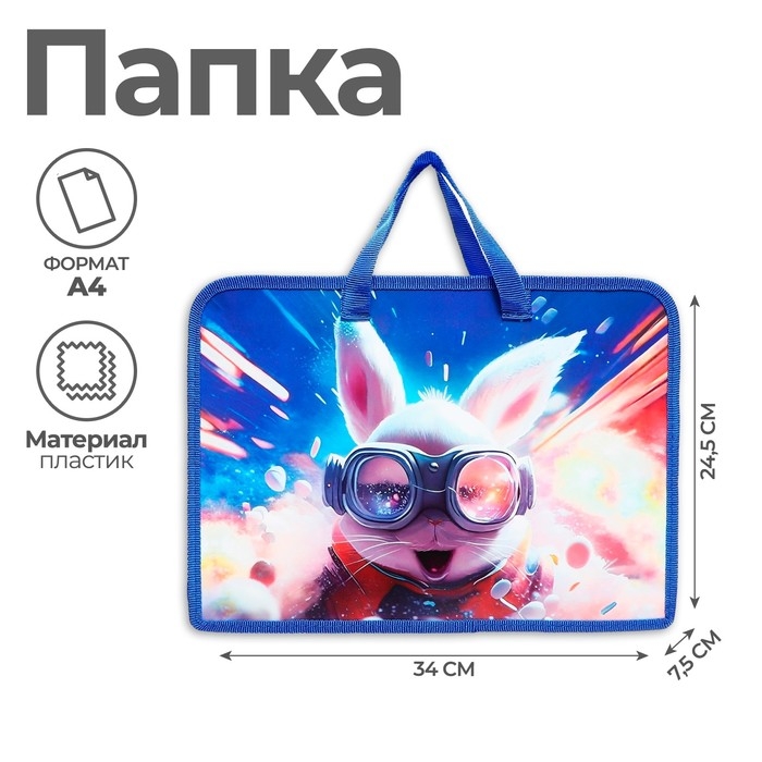 Папка с ручками А4, 340 х 245 х 75 мм, пластиковая, ручки-тесьма, Calligrata ПТ-14 "Дружок заяц"
