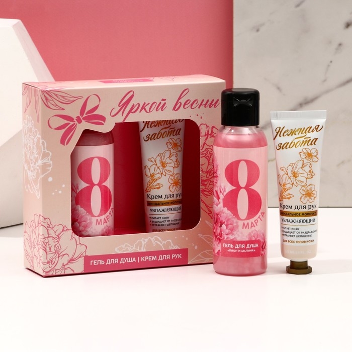 Подарочный набор косметики «Яркой весны!», гель для душа 100 мл и крем для рук 30 мл, ЧИСТОЕ СЧАСТЬЕ