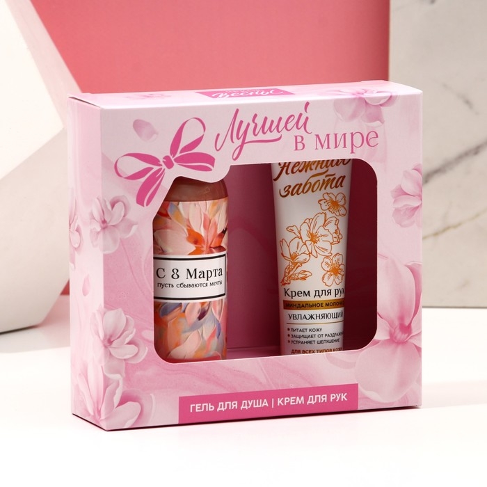 Подарочный набор косметики «Лучшей в мире», гель для душа 100 мл и крем для рук 30 мл, ЧИСТОЕ СЧАСТЬЕ