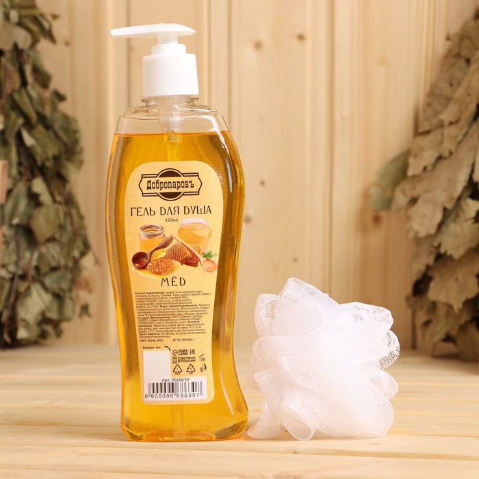Гель для душа "Мёд" 420 мл + мочалка