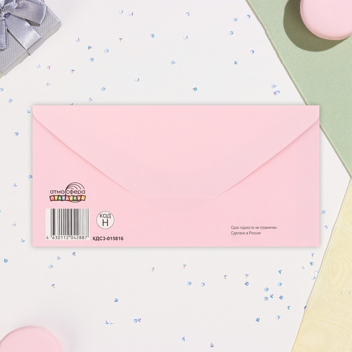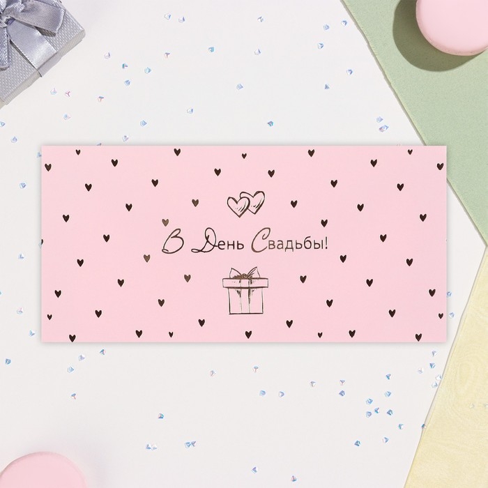 Конверт для денег "В День свадьбы" софт-тач, тиснение, розовый фон, 17х8 см