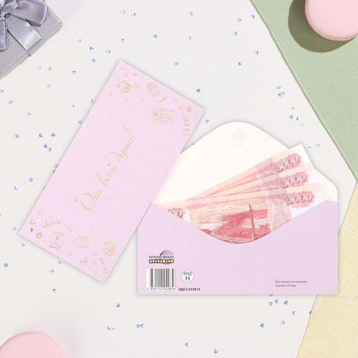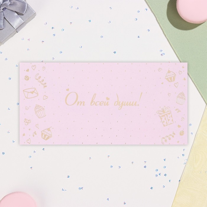 Конверт для денег "От всей души" софт-тач, тиснение, 17х8 см