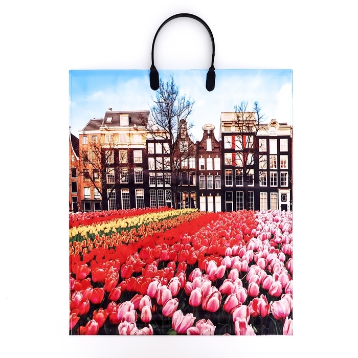 Пакет "Весна в городе", полиэтиленовый с пластиковой ручкой, 38х45 см, 90 мкм