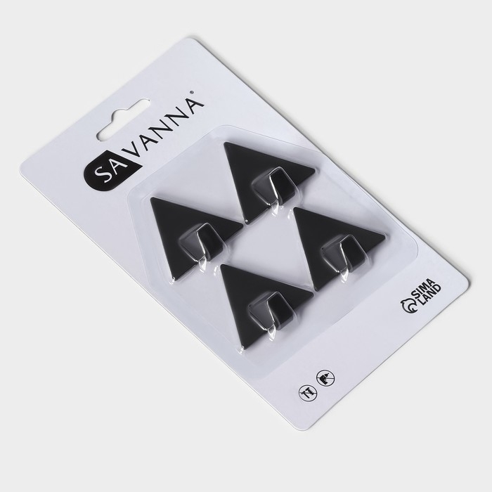 Крючки самоклеющиеся SAVANNA Black Loft, 4 шт, металл, грань 4 см, цвет чёрный