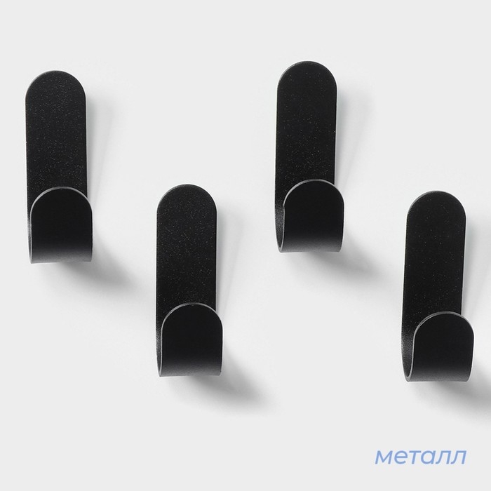 Крючки самоклеющиеся SAVANNA Black Loft, 4 шт, металл, 2,8×5,5×1,8 см, цвет чёрный