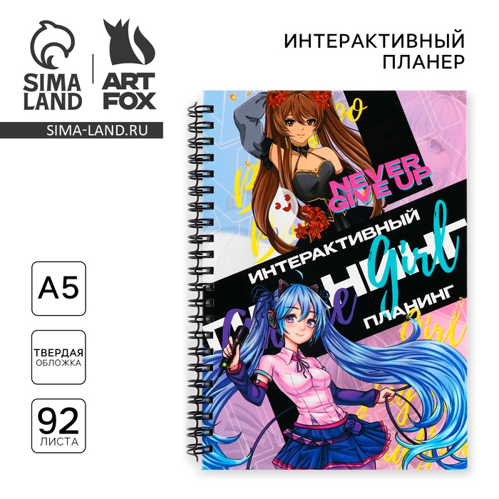 Интерактивный планер А5, 92 л. Твердая обложка «Аниме девочки»