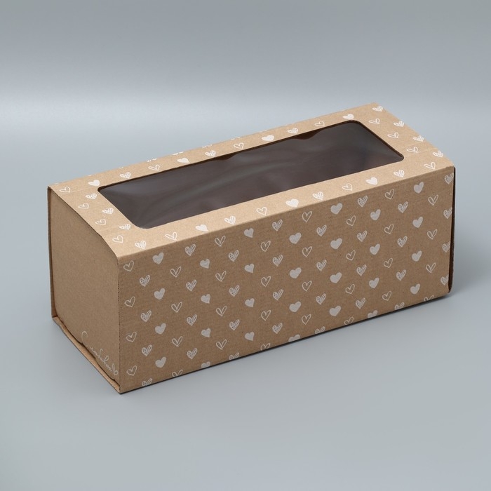 Коробка подарочная складная с PVC-окном, упаковка, «Сердечки», 14 х 35 х 14 см