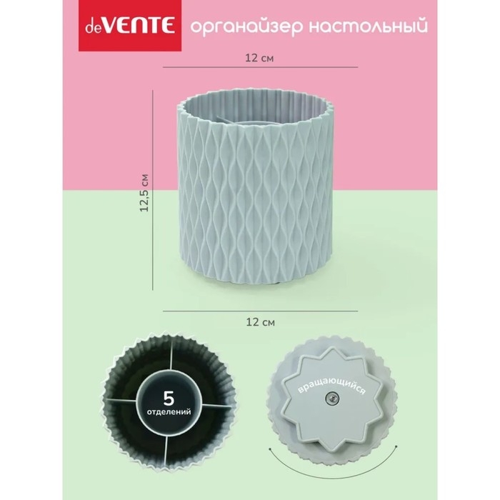 Подставка для пишущих принадлежностей пластиковая "deVENTE. Eclectic" 12,5x12 см вращающаяся, цилиндрической формы с разделителями, цвет жемчужно-голубой, в термоусадочной пленке