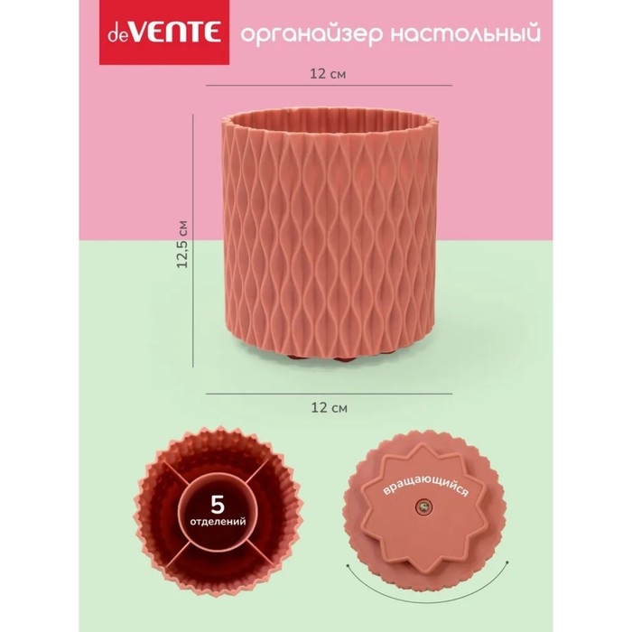 Подставка для пишущих принадлежностей пластиковая "deVENTE. Eclectic" 12,5x12 см вращающаяся, цилиндрической формы с разделителями, цвет лососевый, в термоусадочной пленке