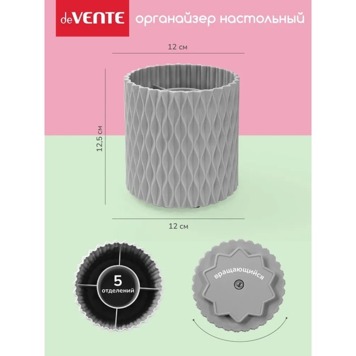 Подставка для пишущих принадлежностей пластиковая "deVENTE. Eclectic" 12,5x12 см вращающаяся, цилиндрической формы с разделителями, цвет дымчато-серый, в термоусадочной пленке