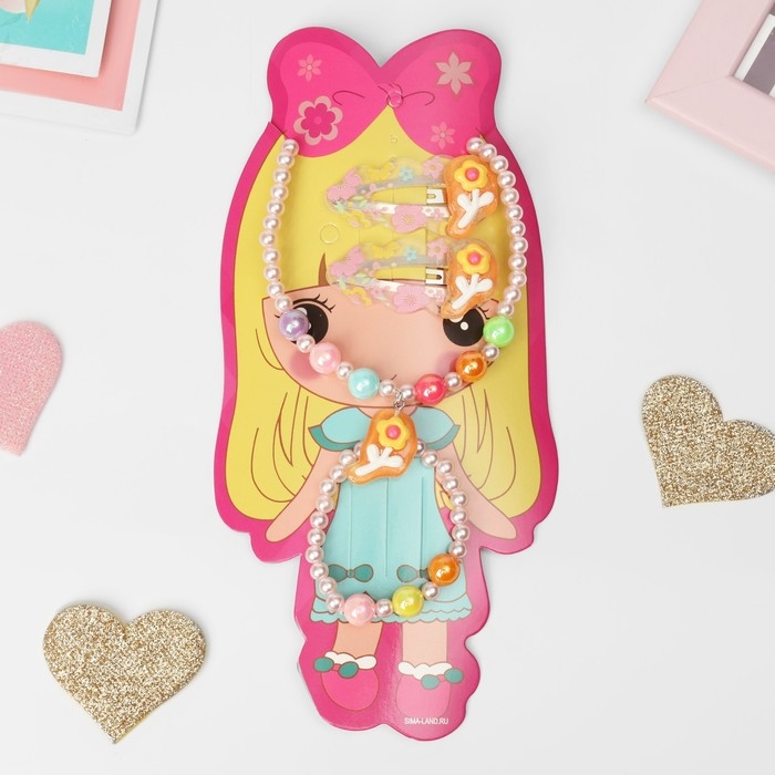 Комплект детский «Выбражулька» 4 предмета: заколка, 3 браслета, сердце, цветной