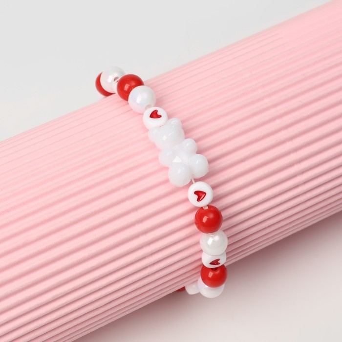 Браслет детский «Выбражулька» мишка в сердечках, цвет красно-белый