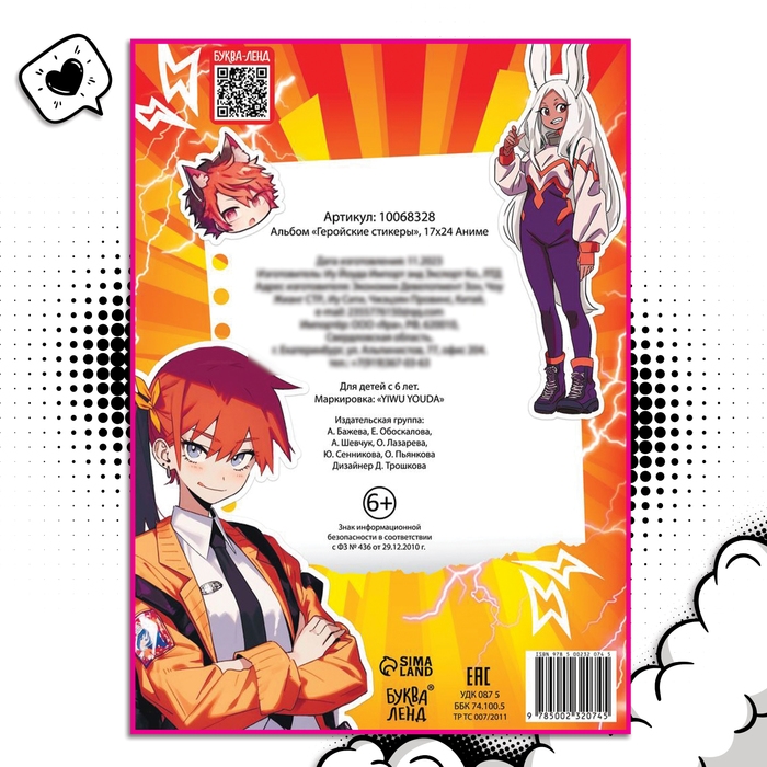 Альбом «Геройские стикеры», 17 × 24 см, Аниме