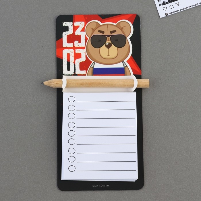 Магнит с блоком для записи и карандашом «23.02», 7 х 14,4 см