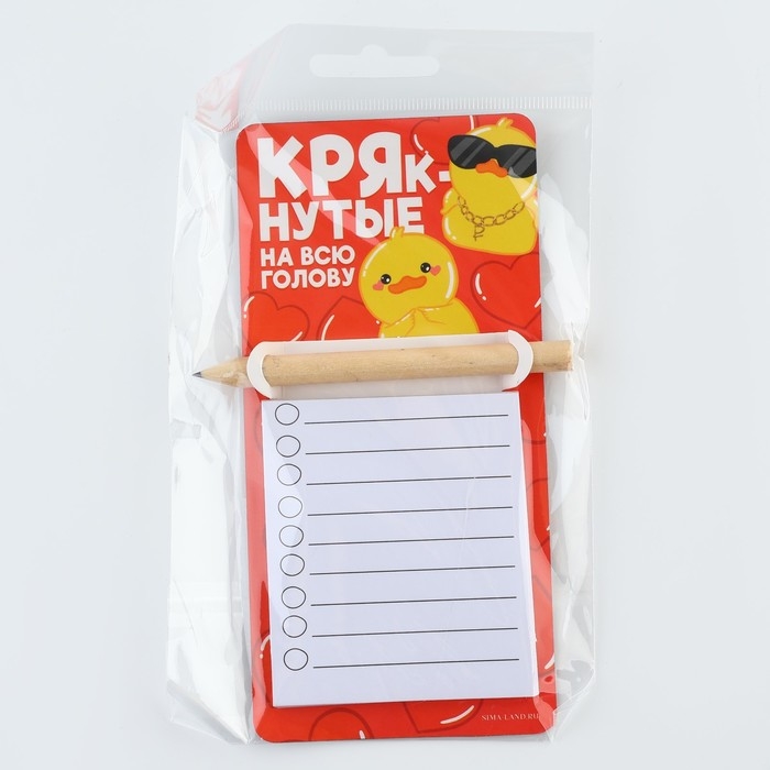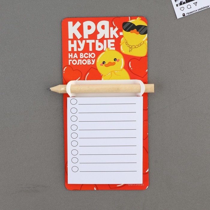 Магнит с блоком для записи и карандашом, сувенир «КРЯкнутые», 7 х 14,4 см.