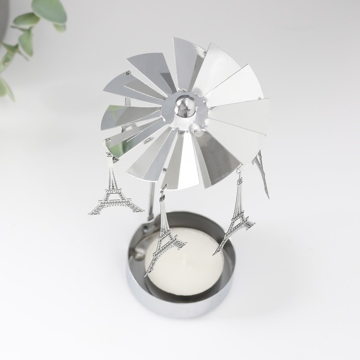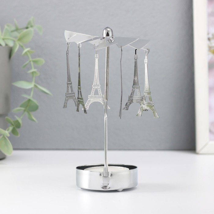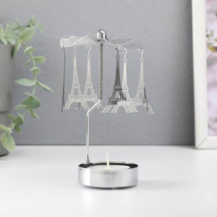 Подсвечник металл на 1 свечу "Карусель. Париж" d=5 см серебро 7,5х7,5х13 см