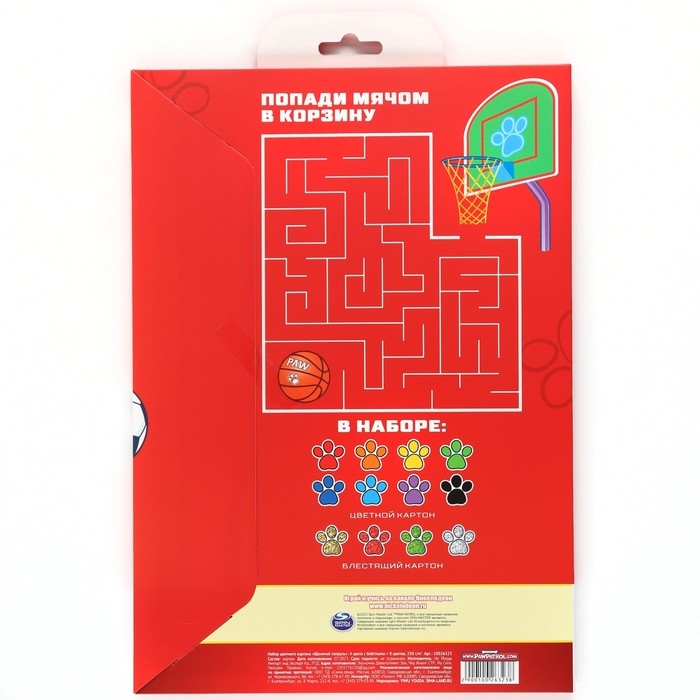 Картон цветной тонированный, А3, 36 листов, 18 цветов, немелованный, двусторонний, в пакете, 140 г/м², Щенячий патруль