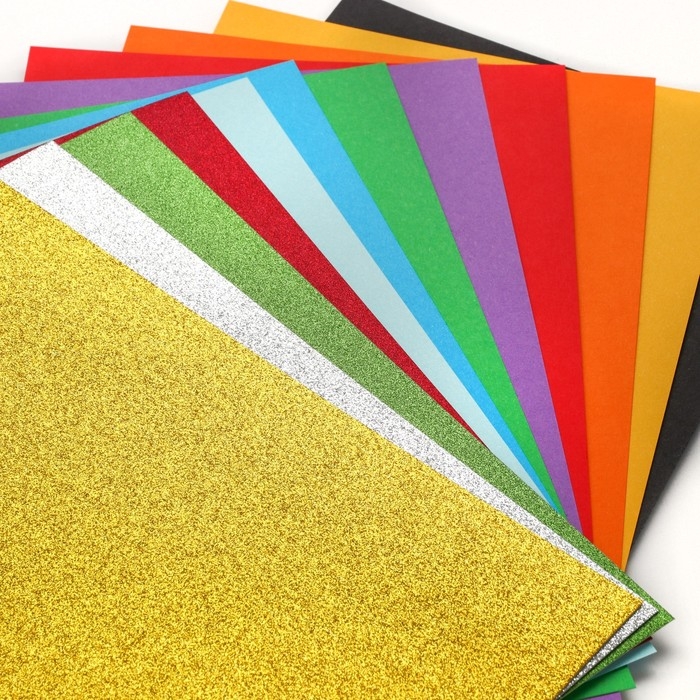 Картон с блёстками А4, 5 листов, 5 цветов, 180 г/м2