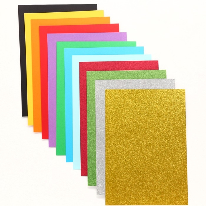 Картон с блёстками А4, 5 листов, 5 цветов, 180 г/м2