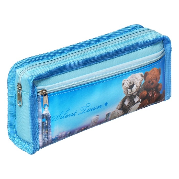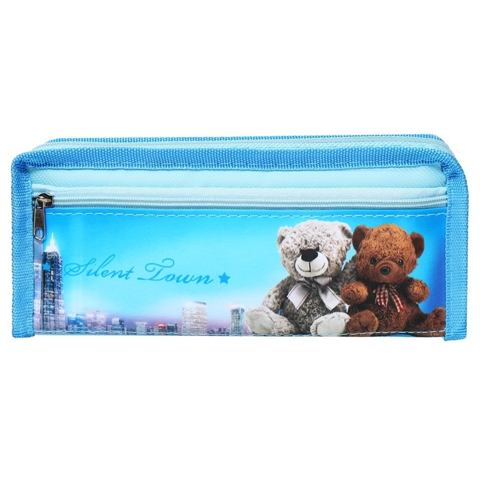 Пенал школьный на молнии Calligrata "Мишки", 2 отделения, голубой