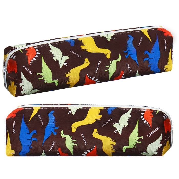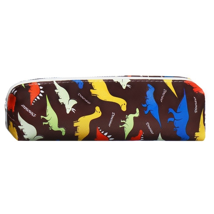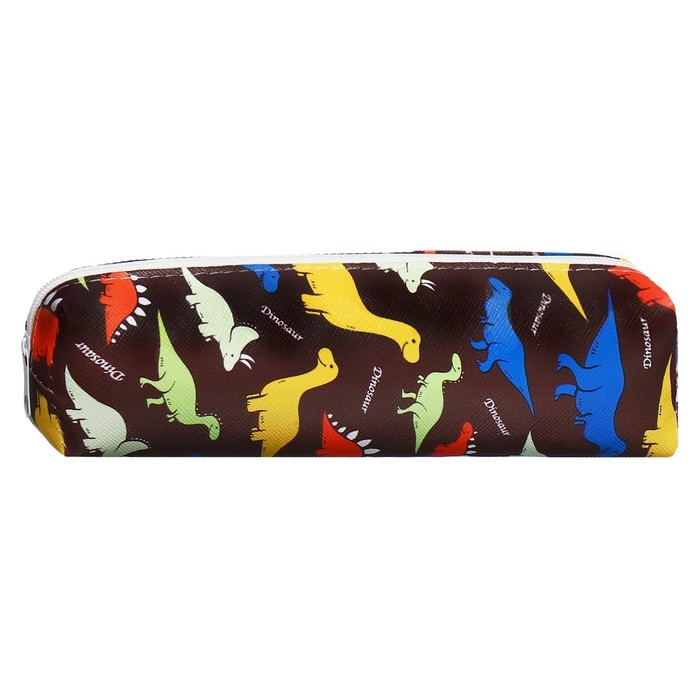 Пенал школьный на молнии "Динозавры" Calligrata, коричневый