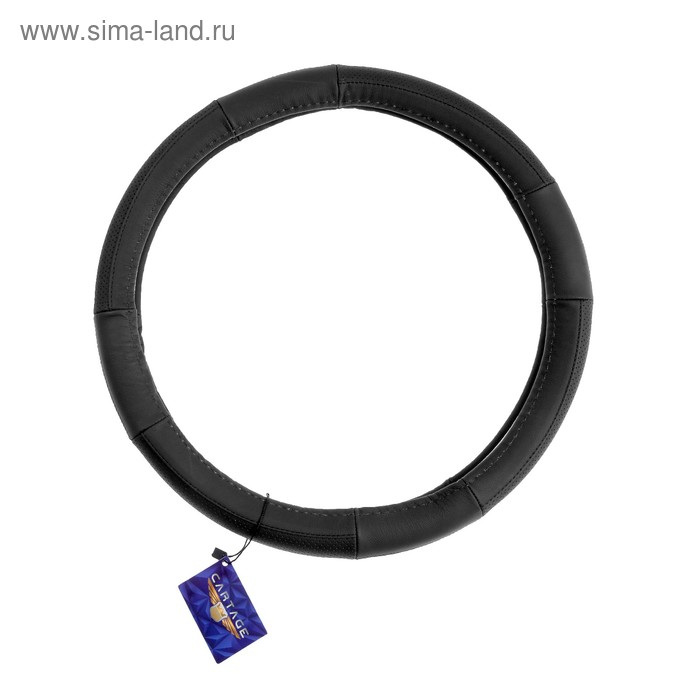 Оплетка на руль Cartage, натуральная кожа, перфорация, размер 38 см, черный