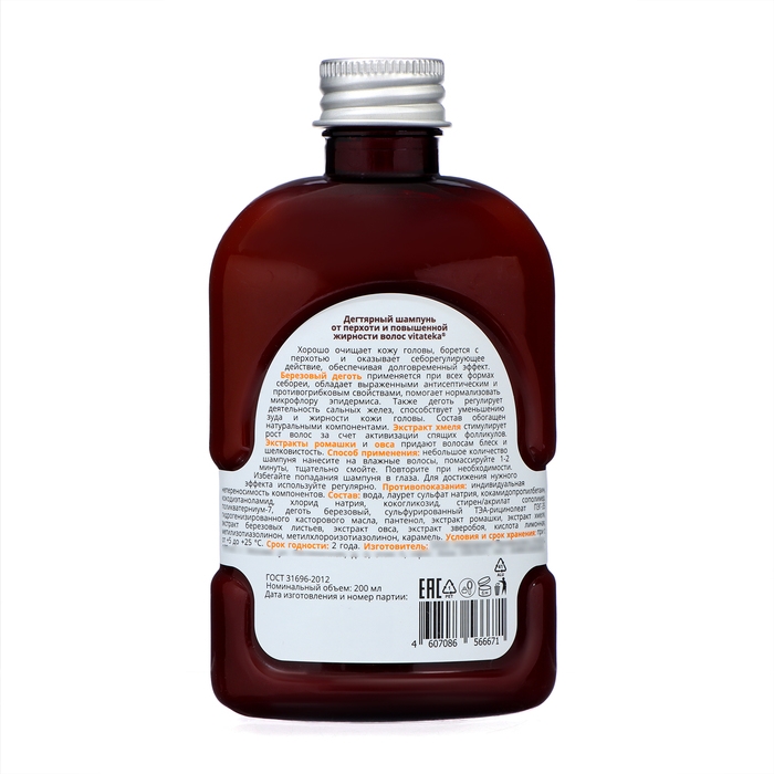 Шампунь дегтярный "Витатека" от перхоти и повышенной жирности волос, 200 мл