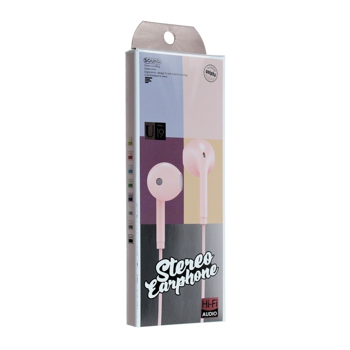 Наушники U19, проводные, вкладыши, 1 м, Jack 3.5 мм, розовые