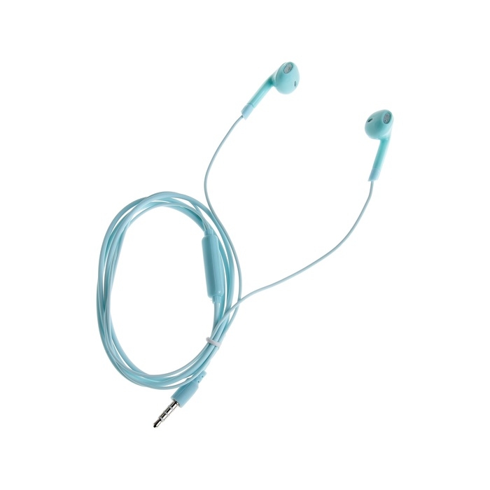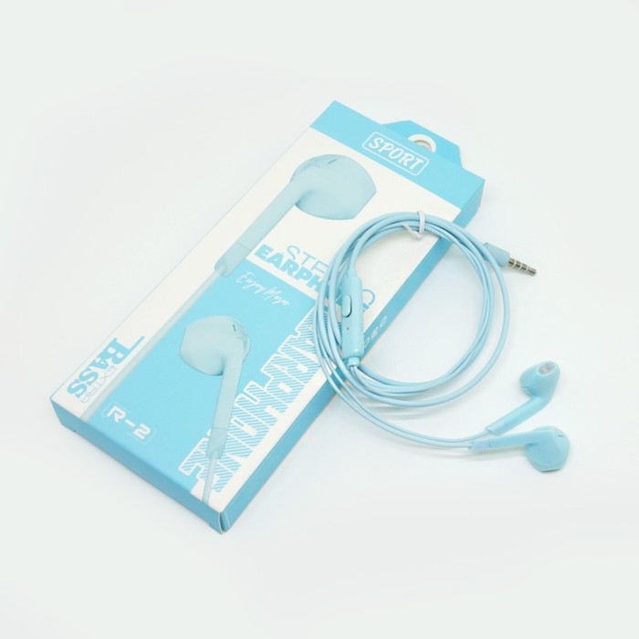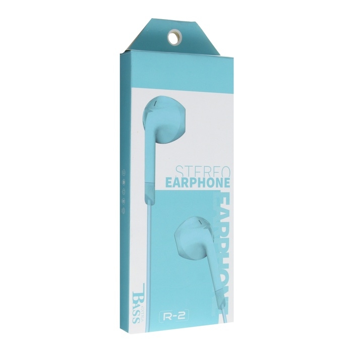 Наушники R-2, проводные, вкладыши, микрофон, 1 м, Jack 3.5 мм, голубые