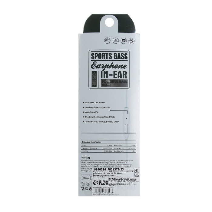 Наушники D21, проводные, вакуумные, микрофон, 1 м, Jack 3.5 мм, белые