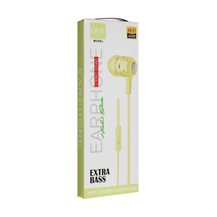 Наушники CB-52, проводные, вакуумные, микрофон, 1 м, Jack 3.5 мм, жёлтые
