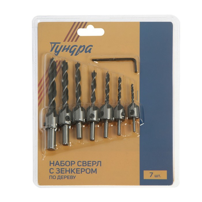 Набор сверл с зенкером ТУНДРА, 3-4-5-6-7-8-10 мм, 7 шт.