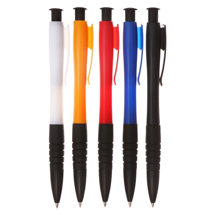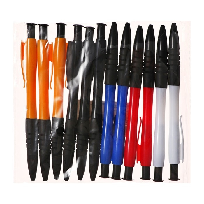 Набор шариковых ручек 12 штук, 0,5мм, автоматическая, корпус с резиновым держателем, офис, чернила синие, МИКС