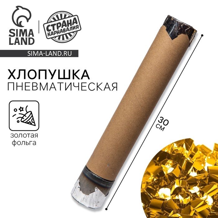 Хлопушка пневматическая с собственным дизайном «Золотая фольга», 30 см
