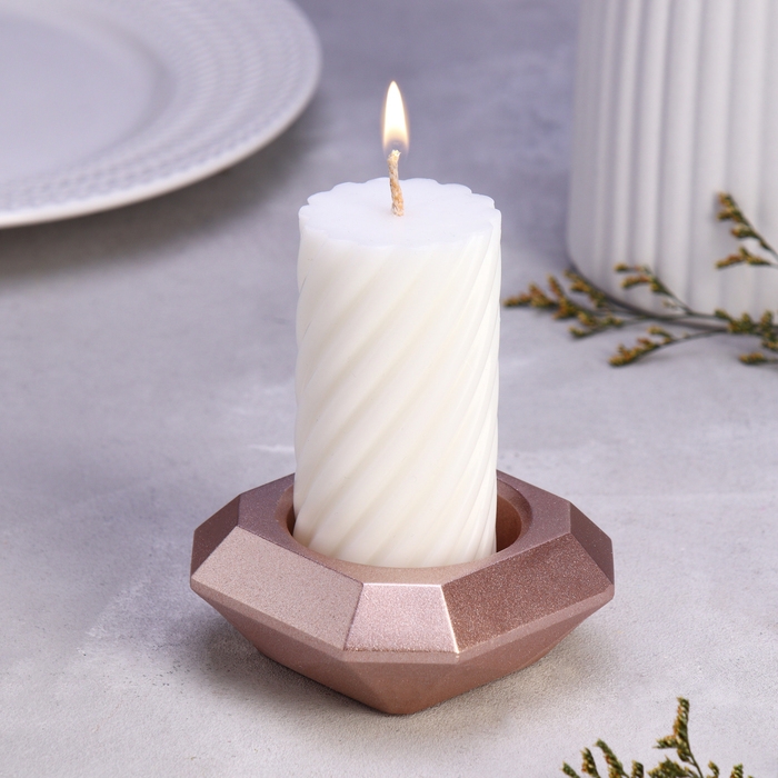 Подсвечник "Квадрат" из гипса со скошенными углами малый,9х3,5см,шампань