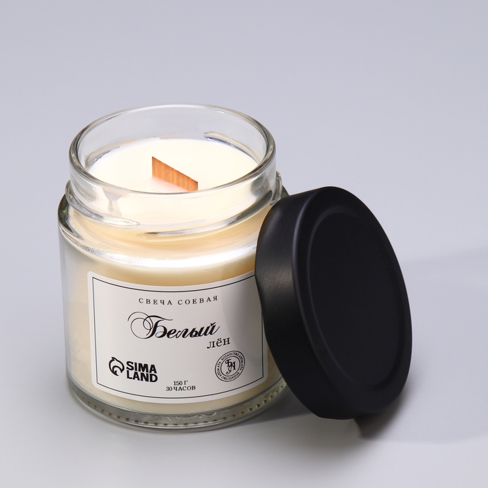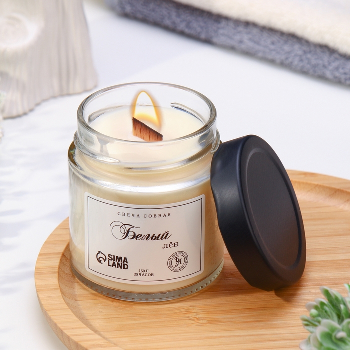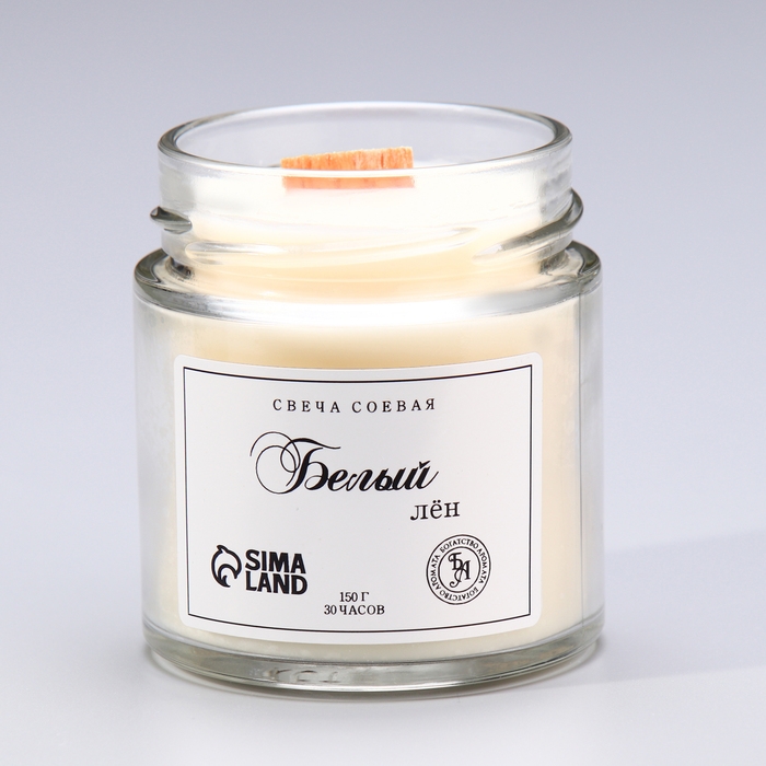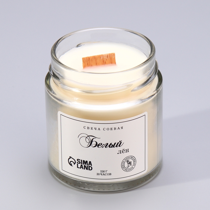 Свеча ароматическая из соевого воска в банке, 150 г, белый лён