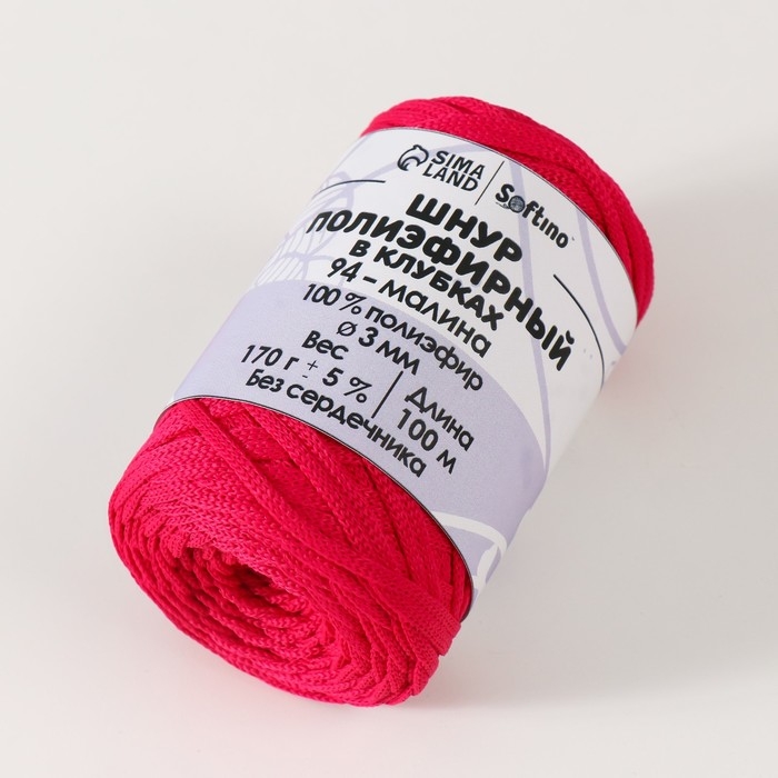 Шнур плоский3 мм полиэфирный в клубках 100м/170г (+/- 5%) малина-94