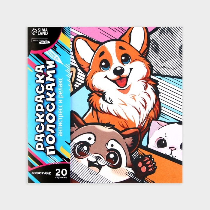 Раскраска-антистресс по полоскам «Яркие животные», 21 х 21 см