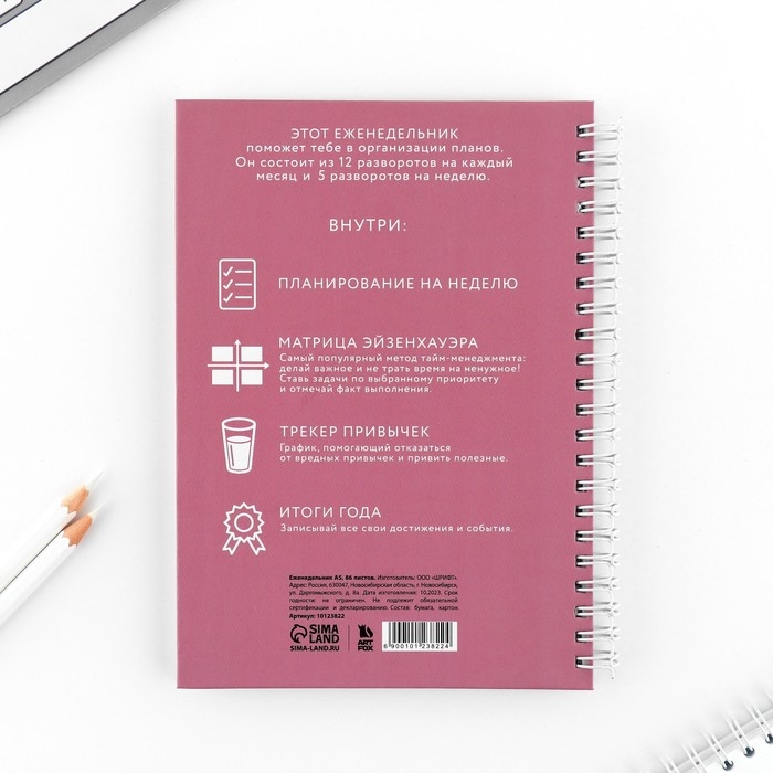Еженедельник А5, 86 л. "Создавай себя"