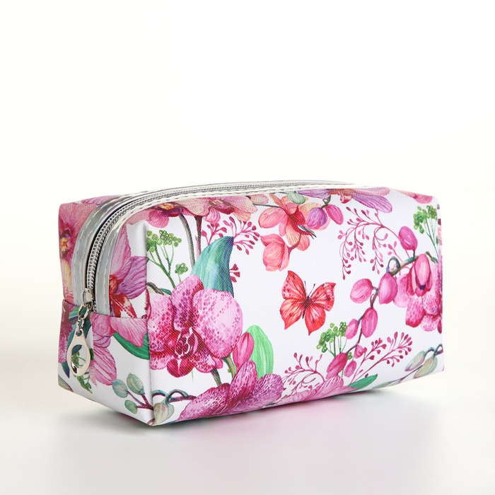Косметичка на молнии, цвет белый/розовый