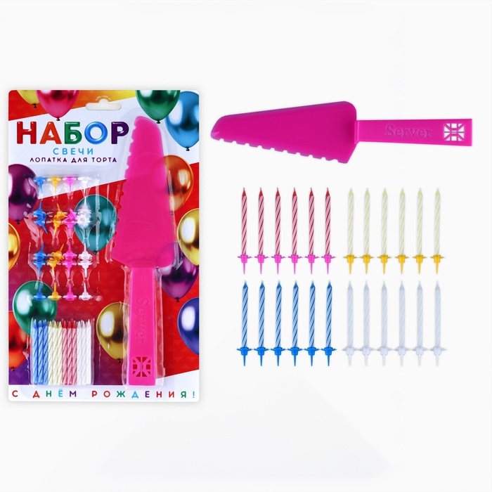 Свечи для торта в наборе с лопаткой для торта «С Днём Рождения», розовая лопатка.