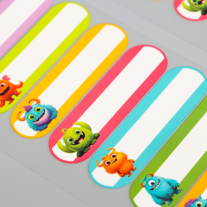 Термобирки для одежды. Набор именных термонаклеек для маркировки детских вещей «Яркие монстрики», 52 шт