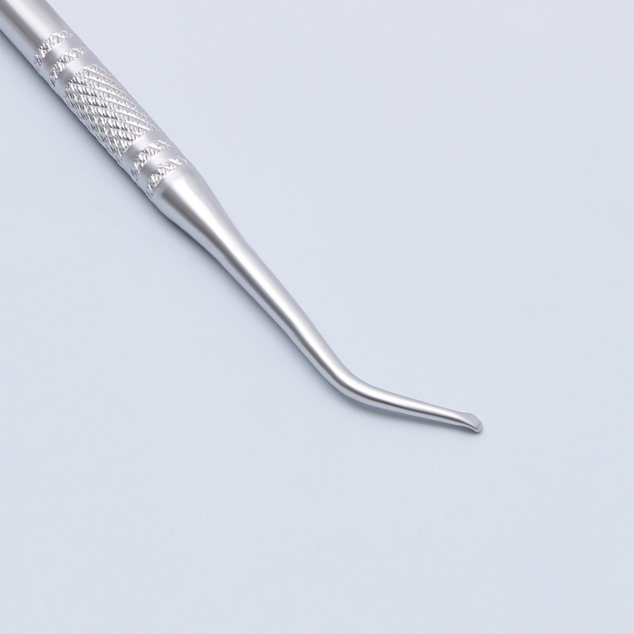 Ребристая поверхность основания предотвращает скольжение в руке. Прекрасно поддевает кутикулу, а также помогает поддеть вросший ноготь, очистить ногти от загрязнений и подготовить к дальнейшим этапам маникюра и педикюра.